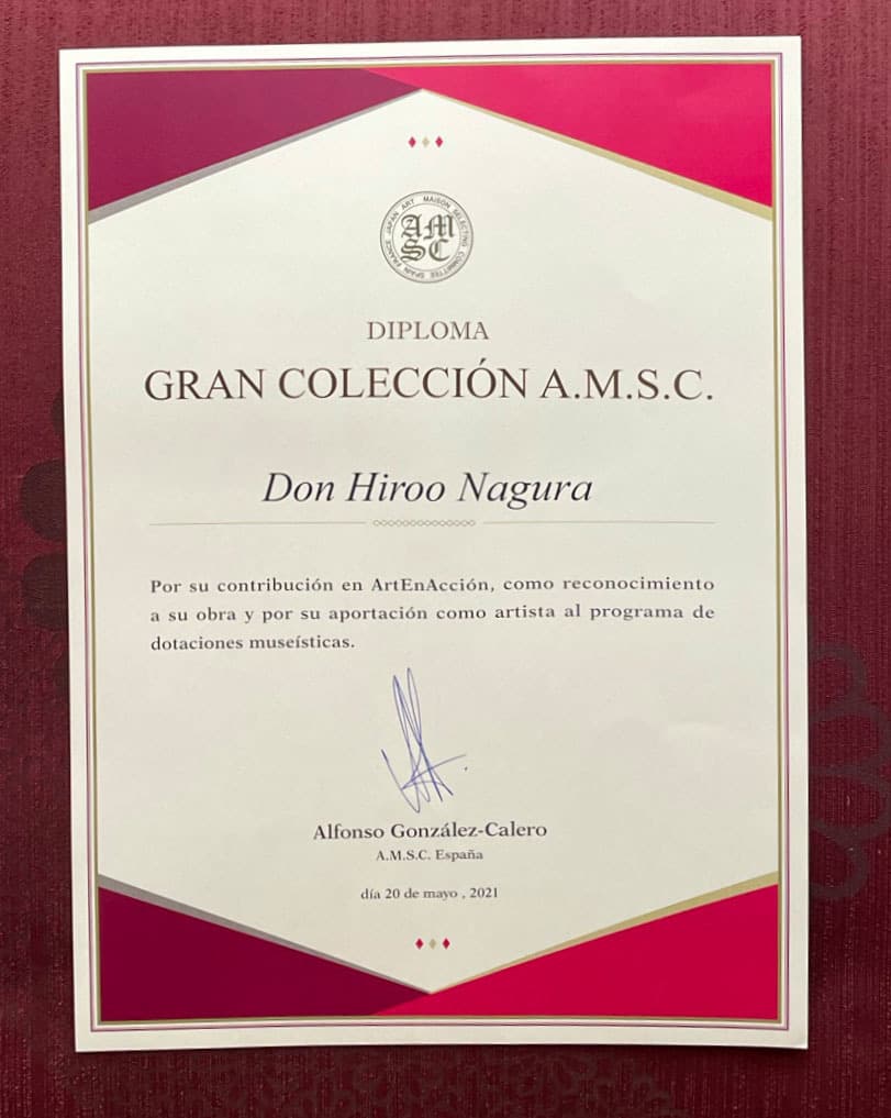 Nagura Hiroo(名倉弘雄/, なぐら ひろお、b. 1945), is a Japanese style painter from Aichi, Japan. He is a chief priest of the Seizan-Fukakusa school of the Jodo sect and the 27rd chief priest of the Futaiin in Aichi. His work is mainly about Noh farce. |